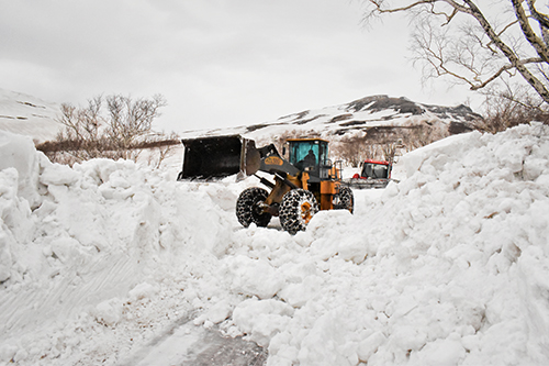長(zhǎng)白山主峰氣候極端復(fù)雜,風(fēng)霜雪雨,瞬息萬(wàn)變,時(shí)常發(fā)生剛剛清理過(guò)的路段,瞬間又被飛雪覆蓋,部分主峰道路積雪厚度超過(guò)3米,鏟車(chē)無(wú)法就地鏟舉積雪,推送距離達(dá)幾百米,清雪難度可想而知。為節(jié)省時(shí)間、降低油耗,隊(duì)員們憑借豐富的經(jīng)驗(yàn),準(zhǔn)確判斷公路和護(hù)欄位置,起早貪黑、加足馬力、就地進(jìn)餐,奮力搶抓清雪進(jìn)程。他們既要承擔(dān)高強(qiáng)度工作任務(wù),又要承受積雪反射紫外線(xiàn)對(duì)皮膚造成的傷害,人員和設(shè)備都經(jīng)受著嚴(yán)峻考驗(yàn)。