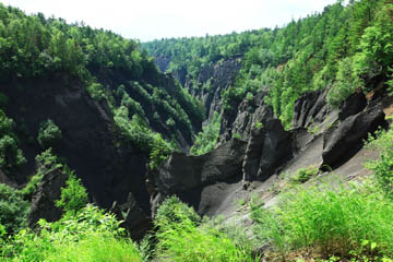 錦江峽谷位于西坡的錦江谷地,距天池二十多公里的梯子河下游,也稱火山熔巖林。在穿越一片茂密的原始紅松林帶后,就能看到長達(dá)十四公里,平均深度八十余米,最深達(dá)一百六十米,寬度百米至三百米間的大峽谷。這里是國內(nèi)規(guī)模最大的火山巖區(qū)峽谷地貌,具有險、幽、奇、秀、美的特點,是長白山新開發(fā)的旅游景觀。錦江大峽谷是由于長白山火山噴發(fā)時,地震所引起的山體分裂,橫切峽谷導(dǎo)致的斷層陡坎的下陷,形成多處階梯狀形區(qū),導(dǎo)致規(guī)模不等的跌水處出現(xiàn)瀑布景觀和地下森林景觀;而火山灰淤積形成的松散巖石,則在峽谷溪流的切削下,在風(fēng)雨的雕琢下發(fā)育成形成各種形狀的景致。千姿百態(tài)、步移景異。